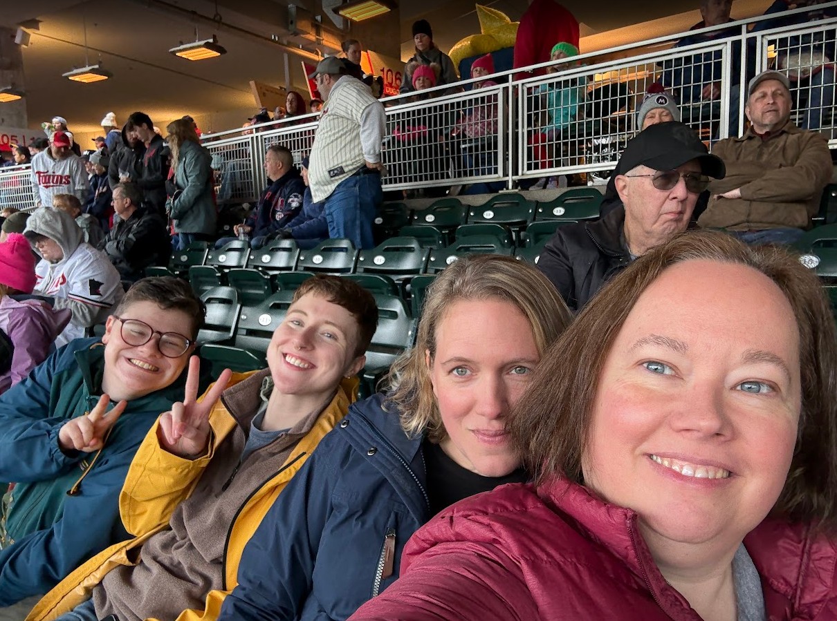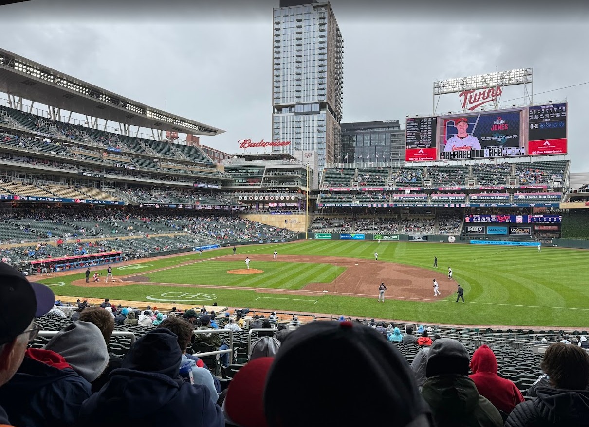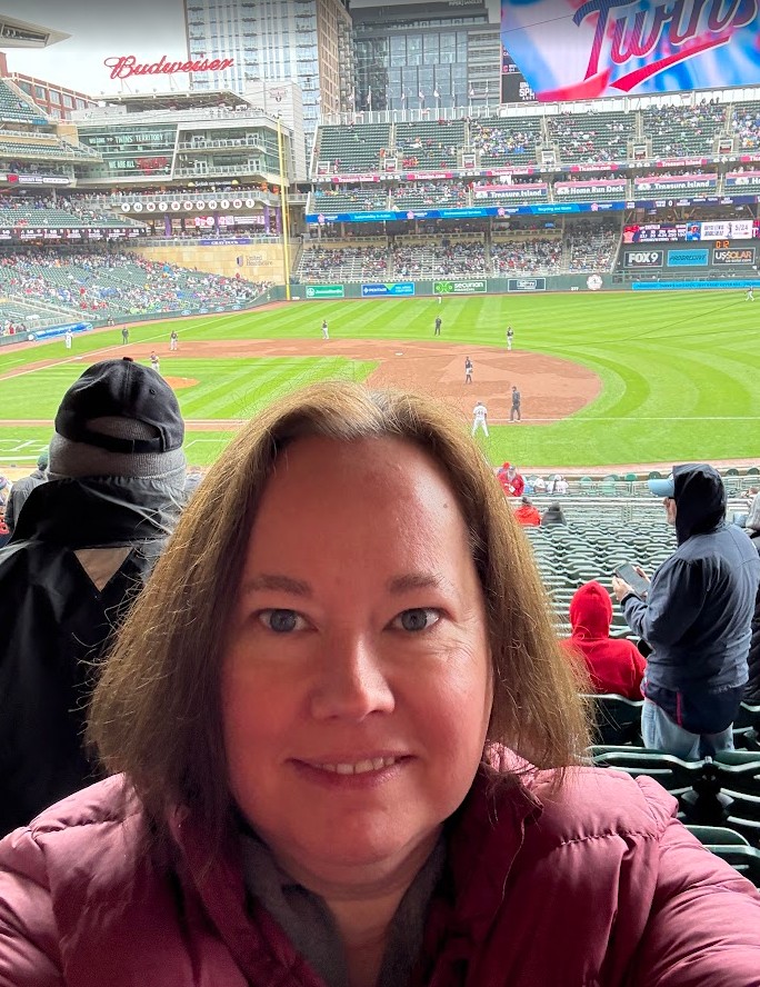 It had been raining a few days before, and so the Twins were playing two games against the Cleveland Guardians (they were the Cleveland Indians for over 100 years until they had a name change in 2021, but they were also called the Cleveland Lakeshores, the Cleveland Bulebirds, the Cleveland Broncos, the Cleveland Naps – so basically a rose by any other name) today. The first game was a continuation of the rain suspension from Monday, May 19, and they won 6-5! Then I stayed for the first inning or so of the second game, which they ended up losing 1-5, to go to work. I was also briefly on the big screen – look for the red blur on my jacket in the video. Even though it was cold and a bit drizzly, a fun time was had by all.