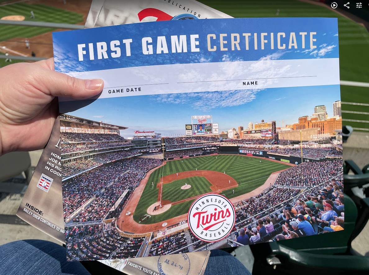 I have not been to a Twins game in years, probably 20 or so years, and back when they were at the Metrodome. I had wanted to go for a while, and so I organized a game to go to and invited my coworkers to come along. Because baseball and friends. I am calling this my “Ferris Bueller’s Day Off” game, but I went back to work after it was over. We took the light rail there and back. Yes, the food was a bit expensive. I got a hot dog and a taco, but I had a good time. I even got a First Game Certificate! It was bright and sunny, and I got a little sunburnt. Happily, the Twins beat the Philadelphia Phillies 5-4.
